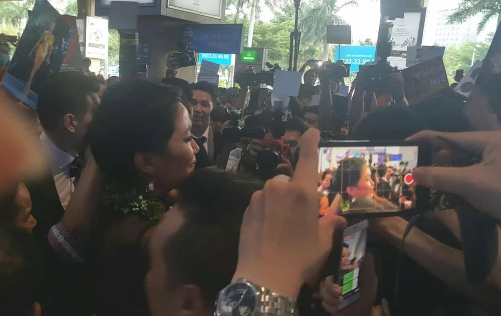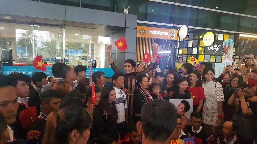 Chuyến bay của H'Hen Niê tới trễ hơn dự kiến gần một giờ, 16 giờ 20 phút ngày 18-12, H'Hen Niê mới đến Tân Sơn Nhất. Các vệ sĩ tại sảnh khá vất vả bởi vòng vây của người hâm mộ dành cho H'Hen Niê.