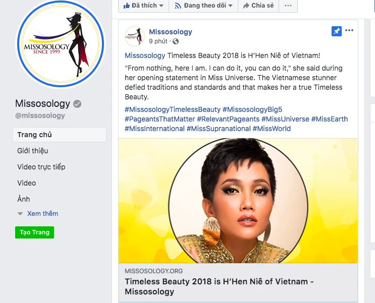 Mới đây, Chuyên trang Missosology đã công bố top hai xuất sắc nhất của giải thưởng Timeless Beauty (Vẻ đẹp vượt thời gian). Vượt qua ba đối thủ trong top 5, đại diện Việt Nam - Hoa hậu H'Hen Niê và Hoa hậu Quốc tế Mariem Velazco là hai gương mặt đi đến vòng cuối cùng.