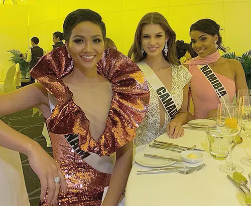 Hoa hậu Hoàn vũ Việt Nam H’Hen Niê đã rất nổi bật tại buổi tiệc. Cô diện bộ đầm ngắn ôm sát vóc dáng quyến rũ, phần tay bèo kiểu nữ hoàng do nhà thiết kế Lưu Ngọc Kim Khanh thực hiện. Không chỉ xinh đẹp, quyến rũ ở buổi tiệc này, đại diện Việt Nam còn nhận được nhiều lời khen là đã tuân thủ yêu cầu của ban tổ chức Miss Universe khi mặc đầm cocktail gọn gàng, trong khi có nhiều thí sinh khác cố tình chọn cho mình những bộ đầm dạ hội tha thướt.