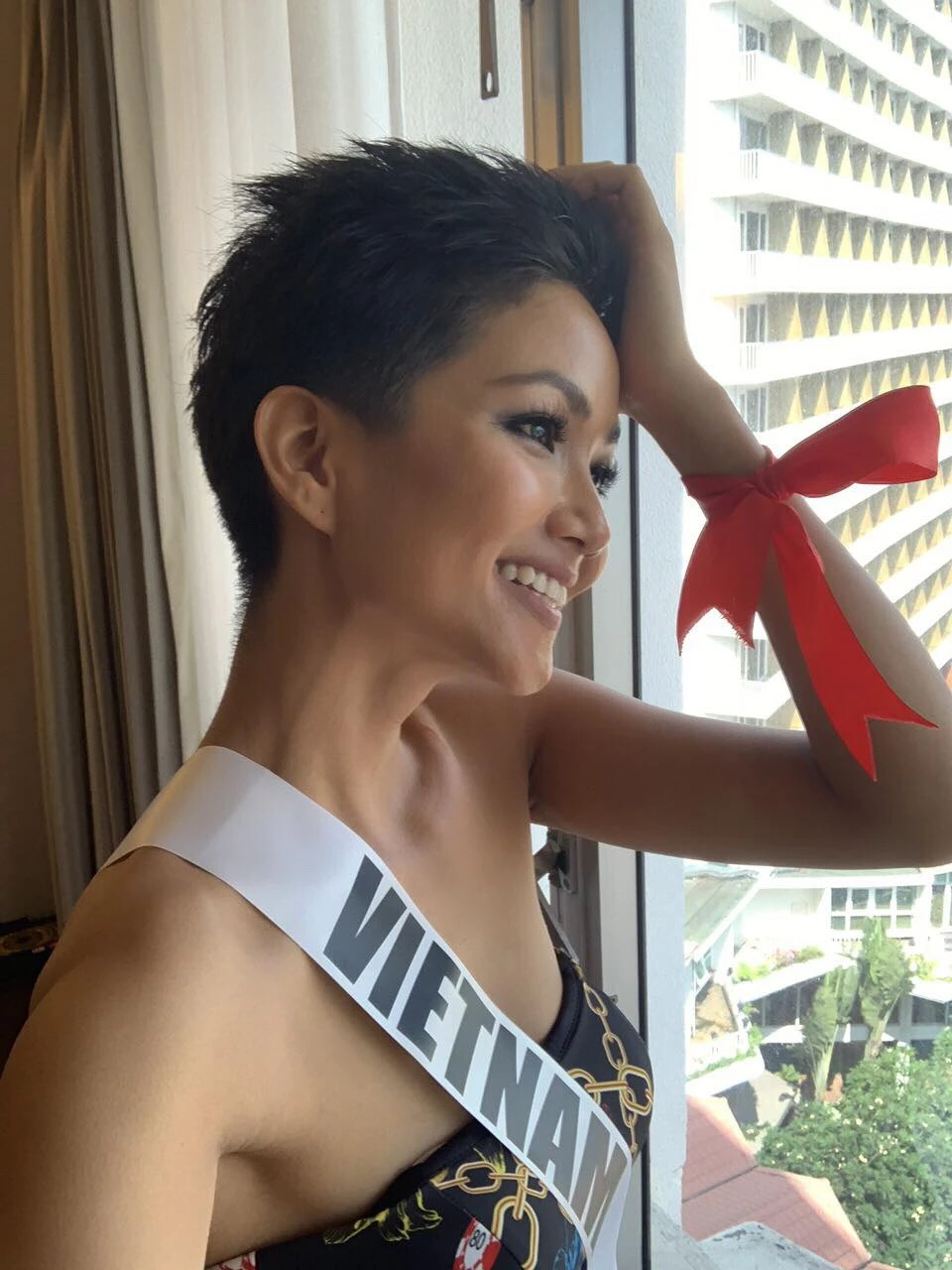 Trước đó, ngay trong ngày kỷ niệm 30 năm toàn thế giới phòng, chống AIDS -World AIDS (1-12), H’Hen Niê cũng đã xuất hiện nổi bật trong cuộc thi với dải băng đỏ (biểu trưng của chiến dịch toàn cầu chống AIDS của UNAIDS - Chương trình phối hợp của Liên Hiệp Quốc về HIV/AIDS) cột trên tay.