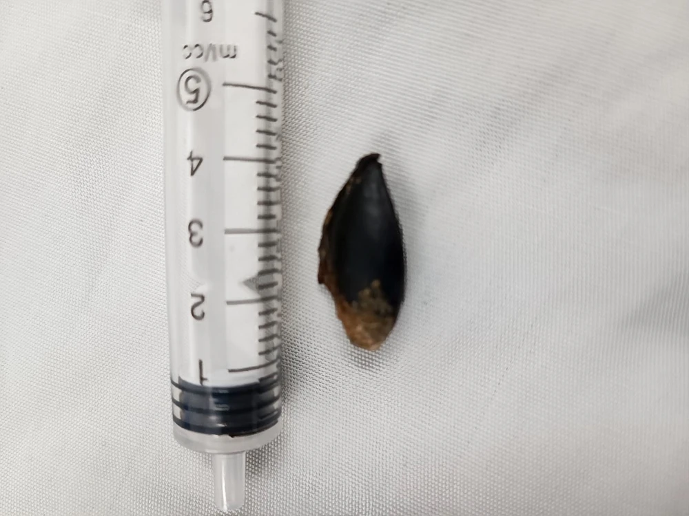 Hạt sapoche nằm trong phế quản người đàn ông suốt 26 năm. Ảnh: BVCC