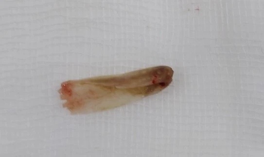 Mảnh xương cá nằm trong phế quản người phụ nữ suốt 9 tháng. Ảnh: BVCC