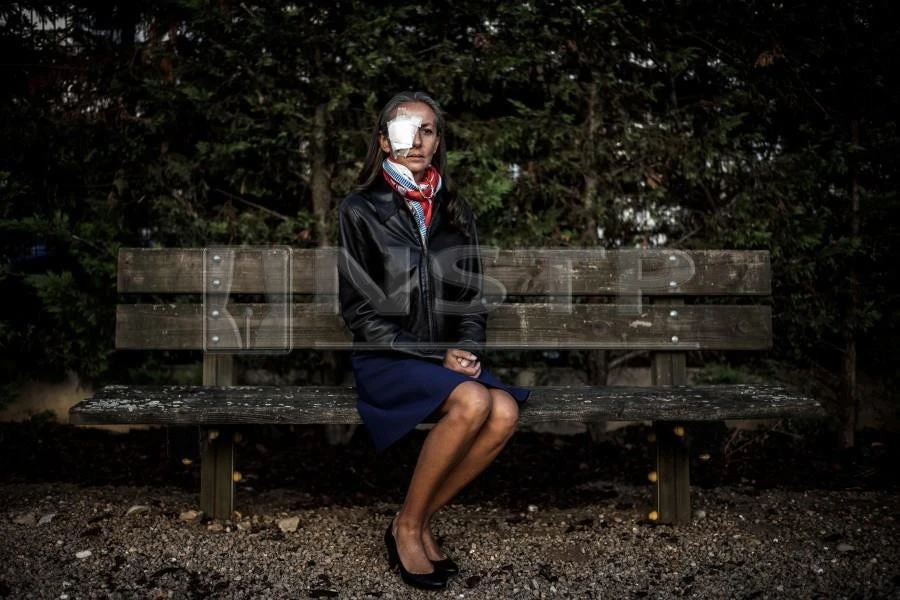 Hiện tại bà Corine đang nằm điều trị tại bệnh viện Lyon, ngoài việc con mắt bị hư thì vùng xương quanh mắt rất nhức nhối, nhiều mảnh xương quanh mắt bị bể và gây đau nhức.