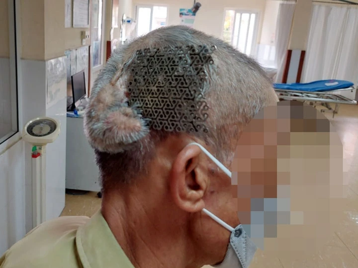 Theo người nhà bệnh nhân, ông T. có tiền sử mổ chấn thương sọ não và được ghép hộp sọ bằng tấm Titatium cách đây 10 năm.