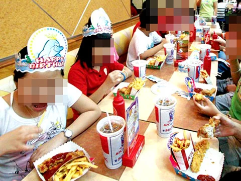 Chị Lê Tuyết Hồng, có con đang học Trường Tiểu học Nguyễn Thái Sơn (quận 3), than phiền: Vào năm học mới được ba tháng cháu đã 4-5 lần được bạn mời dự sinh nhật. “Sinh nhật tổ chức không Mc Donald’s thì cũng KFC hay Lotte. Hamburger, gà rán thì không nói làm gì nhưng những nơi đó toàn bán nước ngọt có gas, chẳng mấy chốc nữa con mình nghiện” - chị Hồng nói.