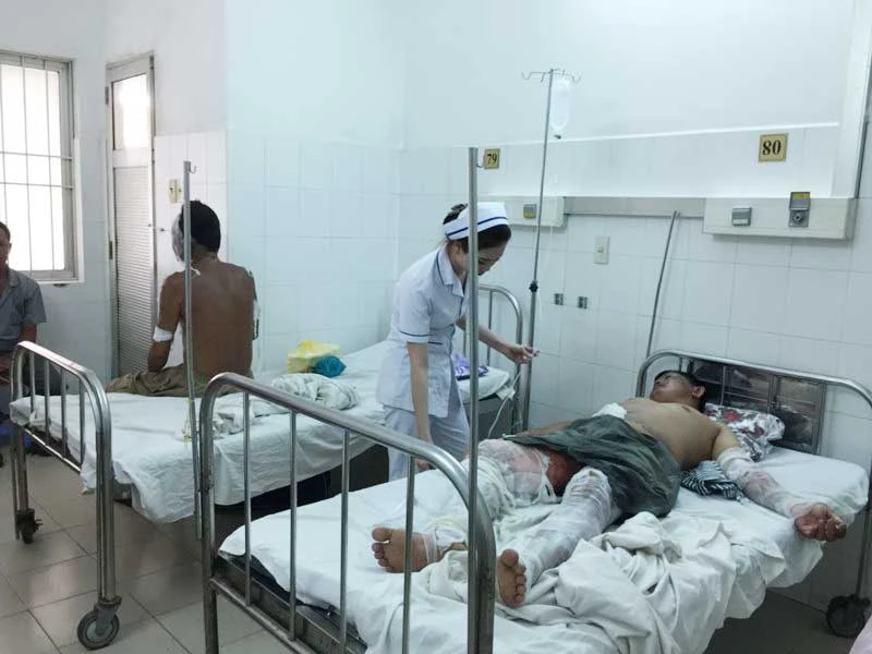 Một số nạn nhân vụ bỏng cồn ở đám cưới đang được điều trị tại BV đa khoa Trung ương TP Cần Thơ. Ảnh: CT