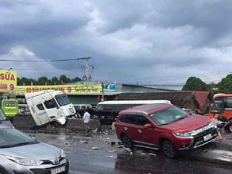 Ngày 4-4, một xe container di chuyển trên quốc lộ 51, hướng từ Biên Hòa đi Bà Rịa-Vũng Tàu, khi qua Trạm thu phí T2 (xã Long Phước, huyện Long Thành) đã tông văng dải phân cách giữa đường khiến xe bị gãy trục đầu xe và rơmoóc phía sau, khiến hai cuộn thép trên xe lăn xuống đường. Vụ tai nạn khiến một ô tô hướng ngược lại không né kịp, lạc tay lái, lao lên dải phân cách và hư hỏng nặng.