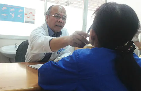 Chị Trúc Ly được BS Hùng tư vấn sau khi phẫu thuật. Ảnh: HÀ PHƯỢNG