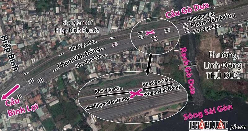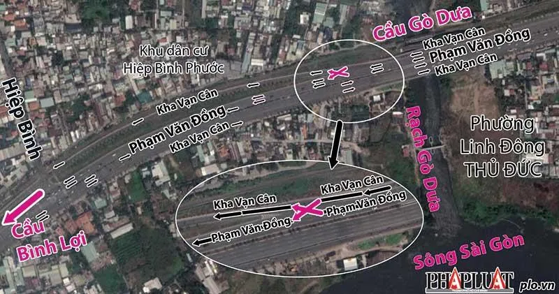 Từ cầu Gò Dưa (Thủ Đức) hướng về cầu Bình Lợi (Bình Thạnh) có hai con đường Kha Vạn Cân và Phạm Văn Đồng chạy song song nhau. Tuy nhiên, vừa xuống cầu Gò Dưa một đoạn thì xuất hiện nút cắt giữa đường Kha Vạn Cân và Phạm văn Đồng. Tại đây thường xảy ra cảnh va quẹt xe do các phương tiện di chuyển khá nhanh, không làm chủ được tốc độ.
