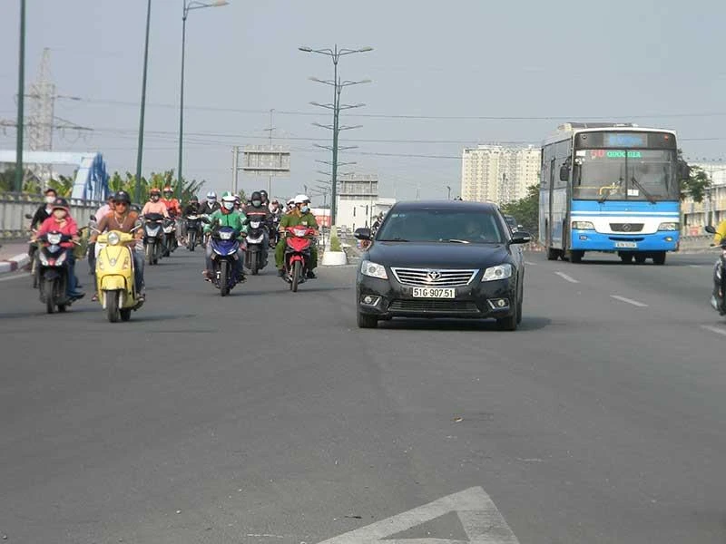 Dòng xe trên đường Phạm văn Đồng chuẩn bị rẽ trái vào đường Kha Vạn Cân. Ảnh: THY NHUNG