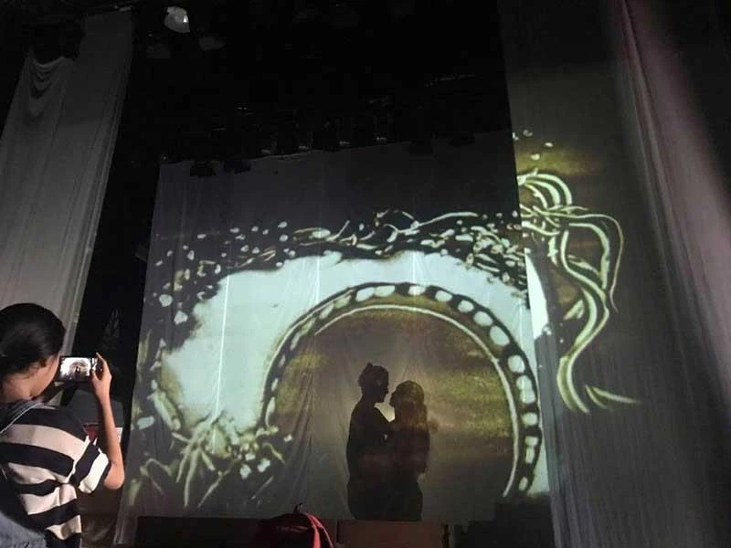 Tranh cát được sử dụng để dàn dựng trong vở Kiếp hồng nhan của Nhà hát kịch Thế Giời Trẻ. Ảnh: LÊ MI