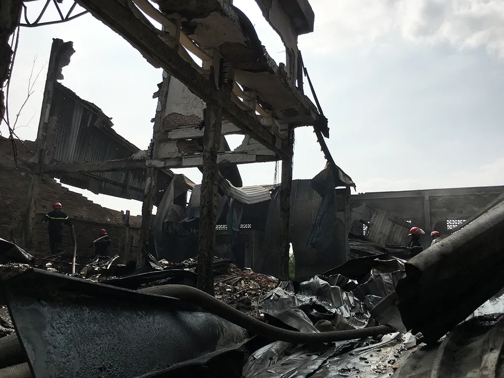 Nhiều tài sản cùng nguyên vật liệu bên trong nhà xưởng bị thiêu rụi. Ảnh: Nguyễn Tân