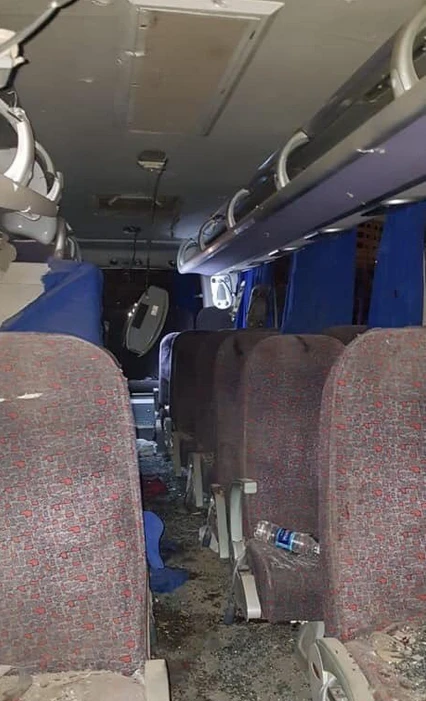 Bên trong chiếc xe buýt bị đánh bom. Ảnh: TWITTER