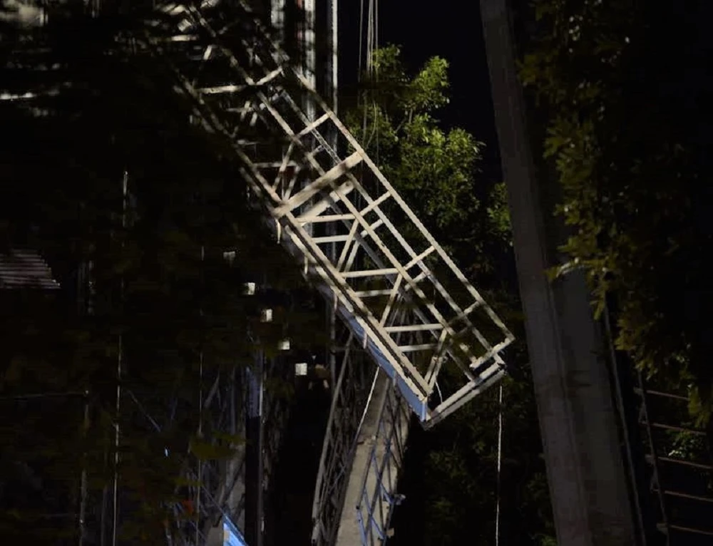 Nhân chứng cho biết khi nhóm công nhân đang thi công thì giàn giáo bị sập, khiến bốn người bị rơi xuống đất, nằm bất động.