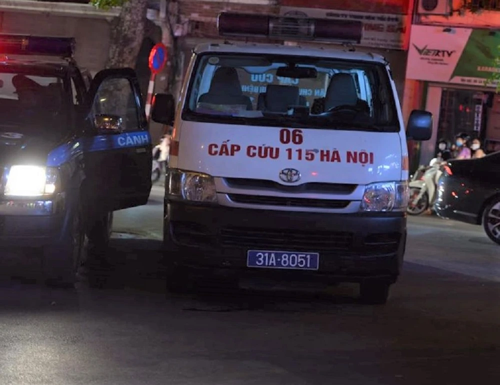 Ghi nhân tại hiện trường, có hai nạn nhân đang nằm dưới đất. Xe cứu thương được điều động để phục vụ công tác cứu hộ.