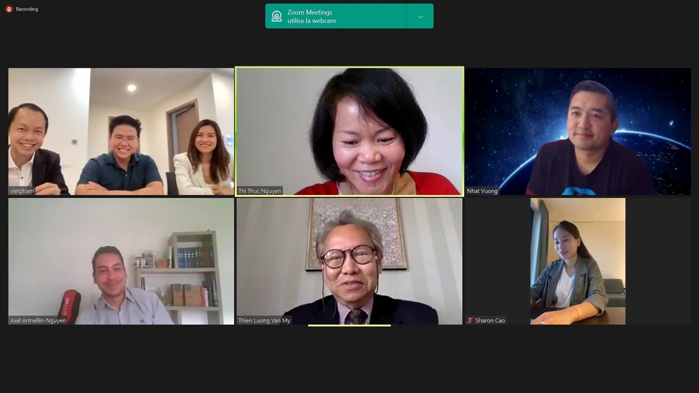 Ảnh chụp màn hình cuộc họp trực tuyến bổ nhiệm Ban đại diện SVBG tại Việt Nam ngày 15-5-2021.