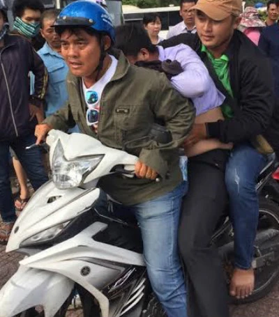 Nghi can (giữa) bị các hiệp sĩ bắt giữ đưa về cơ quan công an.