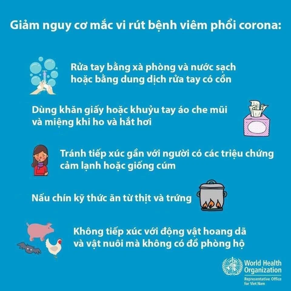 Khuyến cáo giảm nguy cơ mắc vius bệnh viêm phổi corona của Tổ chức y tế.