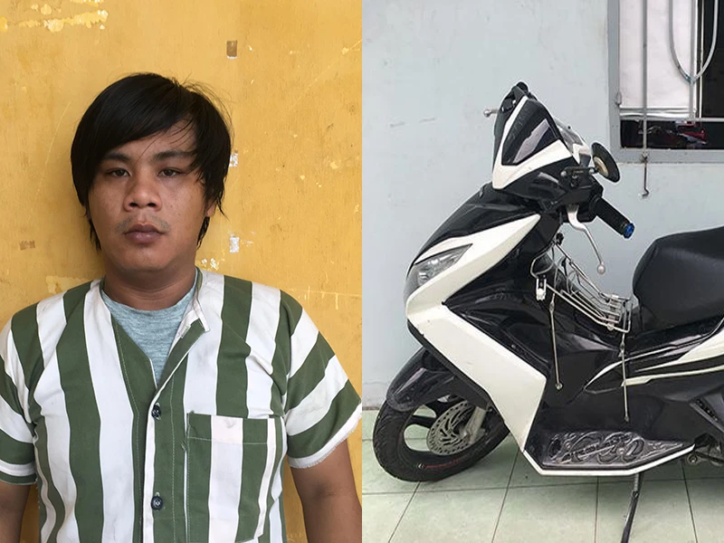 Long cùng tang vật là chiếc xe máy cướp được. Ảnh: H.Tâm