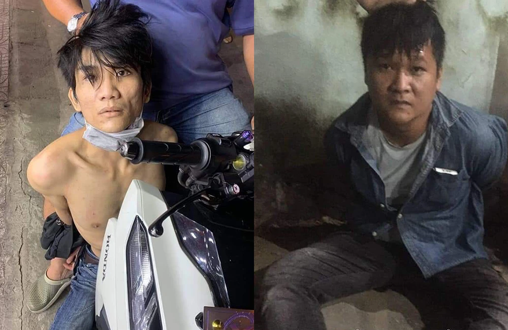 Dương Gia Phong (bên trái) và Long lúc bị bắt. Ảnh: NGUYỄN YÊN