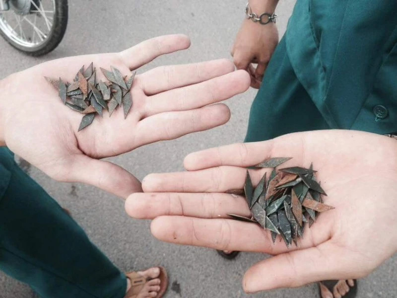 Số lượng đinh mà anh Lợi thu được hàng ngày không phải là ít. Sau mỗi ngày, anh đều đem giao nộp cho Công an xã Tam Phước (TP Biên Hòa) trên dưới một ký để làm bằng chứng, có cơ sở và hướng xử lý “đinh tặc”. Những chiếc đinh đa phần là những mảnh thép được cắt thành hình thoi sắc lẹm.