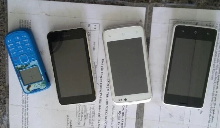 Tại đây, hai thanh niên khai tên Võ Minh Lâm (27 tuổi) và Nguyễn Trí Thịnh (28 tuổi) cùng ngụ thị xã Thuận An. Cả hai đều nghiện ma túy và có tiền án về trộm cắp. Khám xét trong người hai nghi can có 4 cái điện thoại. Cả hai khai trước đó đã trộm tại địa bàn phường Phú Lợi hai chiếc.