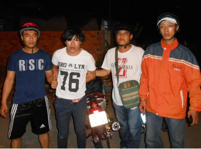 Sau một giờ truy tìm, nhóm “hiệp sĩ” phát hiện một thanh niên lái xe máy như mô tả trên đường Nguyễn Huệ (thuộc địa bàn phường Hòa Phú) nên đã tổ chức truy đuổi.