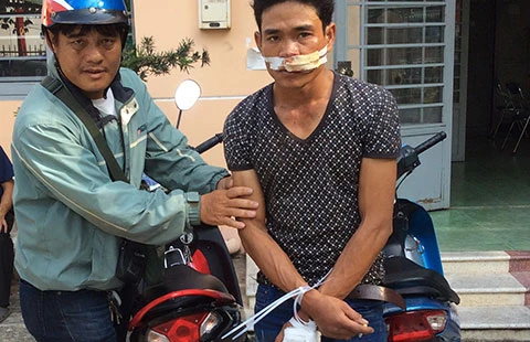 “Hiệp sĩ” Nguyễn Thanh Hải bắt nghi can trộm xe máy. Ảnh: VH
