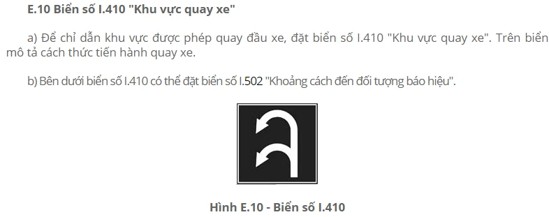 Liên hệ với một CSGT tại TP.HCM, vị này cũng cho biết biển I.410 quy định là khu vực quay đầu xe và không có đề cập đến việc không cho người lái xe được phép rẽ trái. Như vậy biển I.410 không cấm người lái xe rẽ trái.