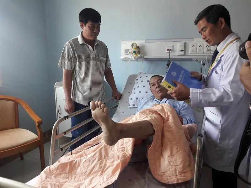 Bệnh nhân TVA (56 tuổi) đã cử động được nửa người sau khi điều trị tại BV ĐH Y Dược. Ảnh: HÀ PHƯỢNG