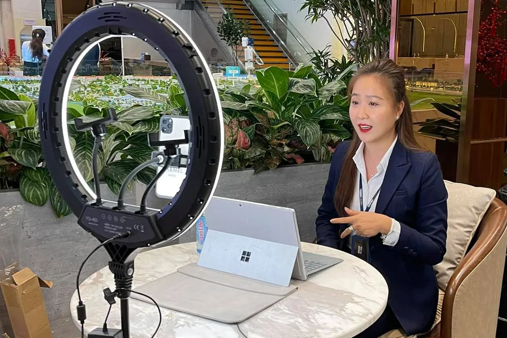 Nhiều công ty BĐS chuẩn bị lực lượng chuyên nghiệp để sản xuất các clip, livestream bán sản phẩm qua mạng rất hiệu quả. Ảnh: HUYỀN PHẠM