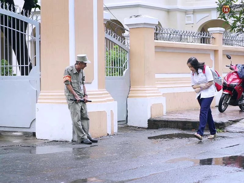 Học sinh Trường Lê Hồng Phong cúi chào bác bảo vệ. Ảnh: INTERNET