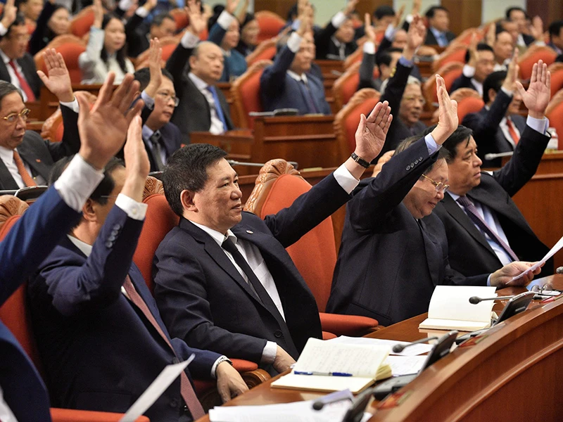 Các ủy viên Trung ương dự Hội nghị Trung ương 12, khóa XII. Ảnh: VGP/NHẬT BẮC