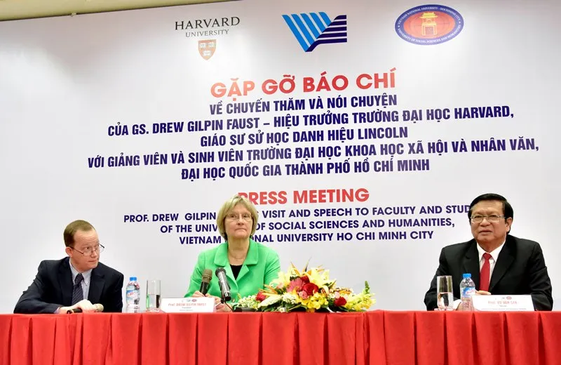 Trong khuôn khổ chuyến thăm trường, Hiệu trưởng Trường ĐH Harvard cũng đã có buổi làm việc với Giám đốc ĐH Quốc gia TP.HCM và Hiệu trưởng ĐH KHXH&NV để bàn về tiềm năng và hợp tác giữa các trường. Trong phần gặp gỡ báo chí, GS Faust cho biết hiện có 16 sinh viên Việt Nam đang theo học tại Harvard và các trường thành viên.
