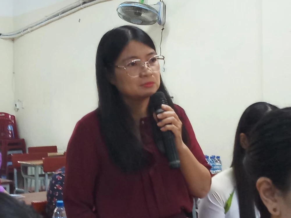 Cô Nguyễn Thị Hòa, giáo viên môn Địa lý chia sẻ thông tin tại buổi trao đổi với báo chí sáng 30-3. Ảnh: NGUYỄN QUYÊN