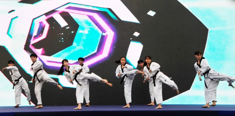 Biểu diễn võ nhạc của các em học sinh CLB Năng khiếu