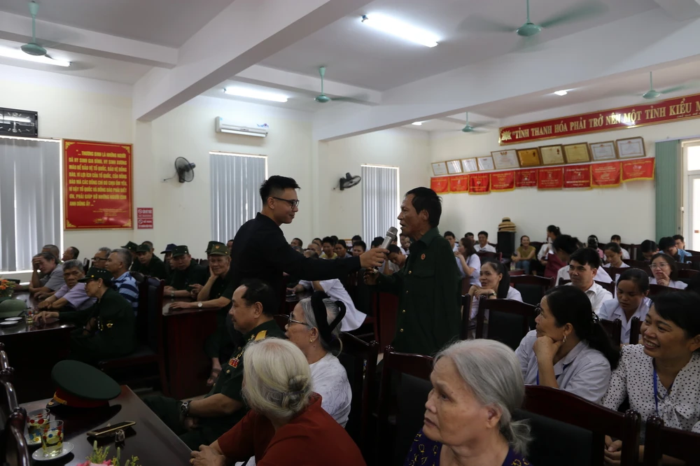 Ca sĩ Đông Hùng hào hứng giao lưu với các thương, bệnh binh