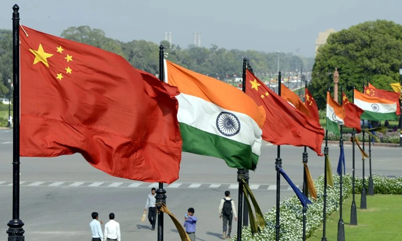 Cờ Trung Quốc và Ấn Độ. Ảnh: GLOBAL TIMES