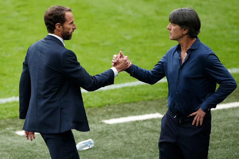 Bắt tay với đồng nghiệp Southgate, HLV Joachim Low đã nhận ra mình hết thời với tuyển Đức rồi.