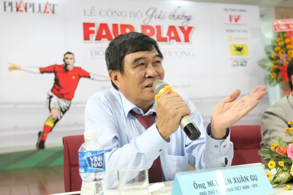 Phó chủ tịch Liên đoàn bóng đá Việt Nam VFF Nguyễn Xuân Gụ trả lời câu hỏi của báo chí.