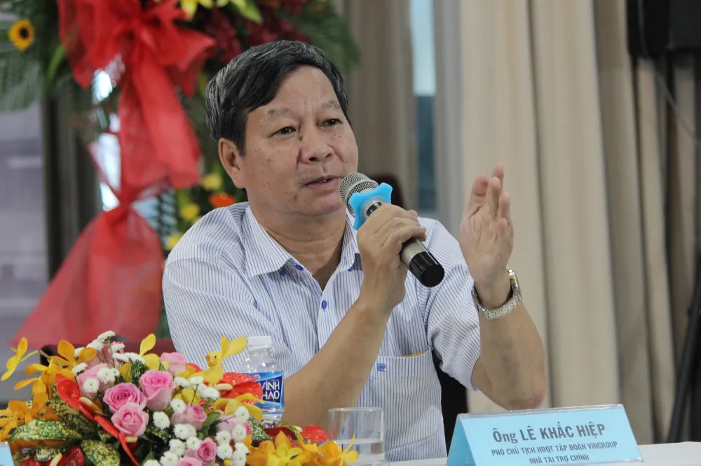 Ông Lê Khắc Hiệp - Phó chủ tịch HĐQT Tập đoàn Vingroup, nhà tài trợ chính của giải Fair Play trả lời câu hỏi của báo chí.