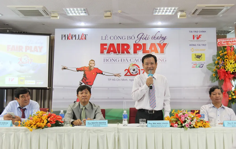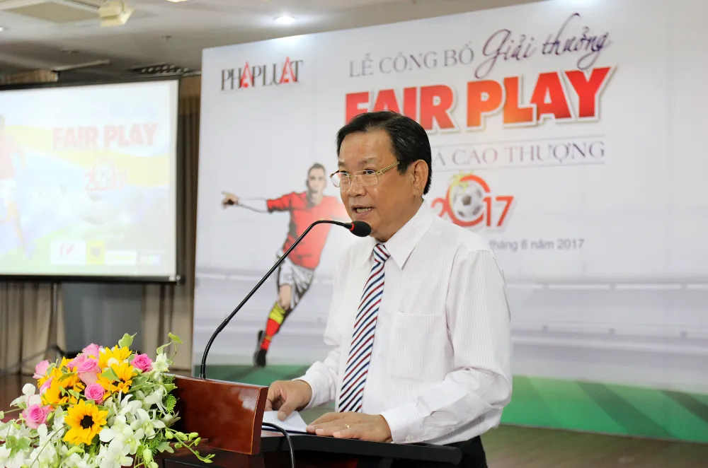 Ông Mai Ngọc Phước - Tổng biên tập báo Pháp Luật TP.HCM,Trưởng BTC công bố giải Fair Play 2017.