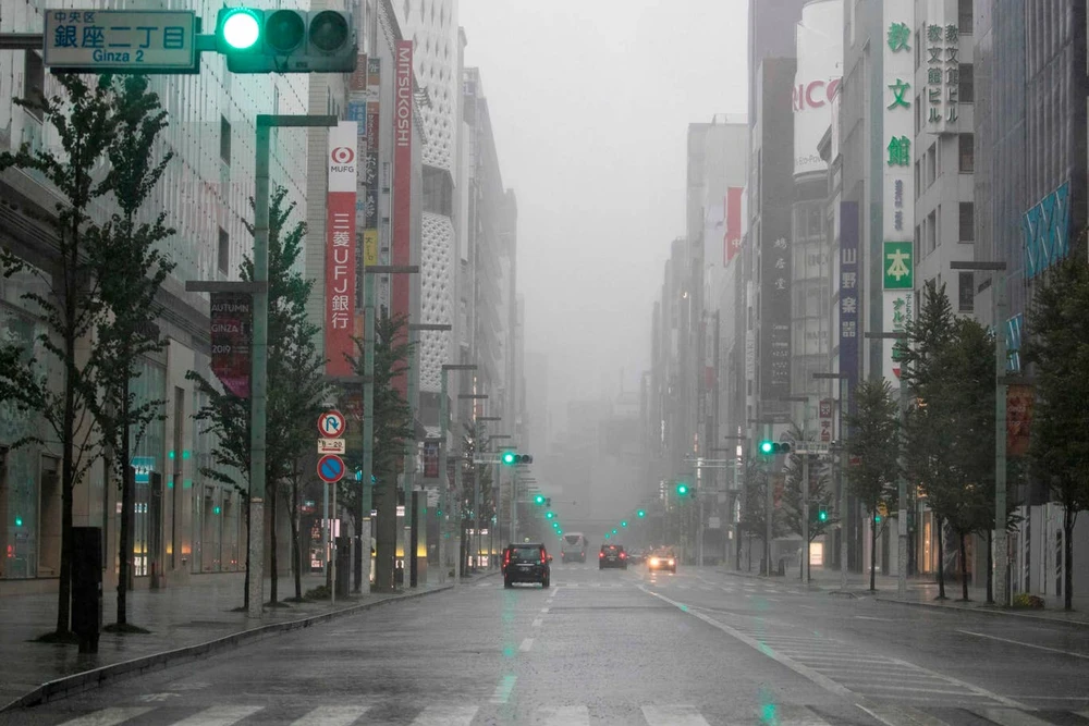 Đường phố Tokyo vắng vẻ trong mưa bão ngày 12-10. Ảnh: AFP