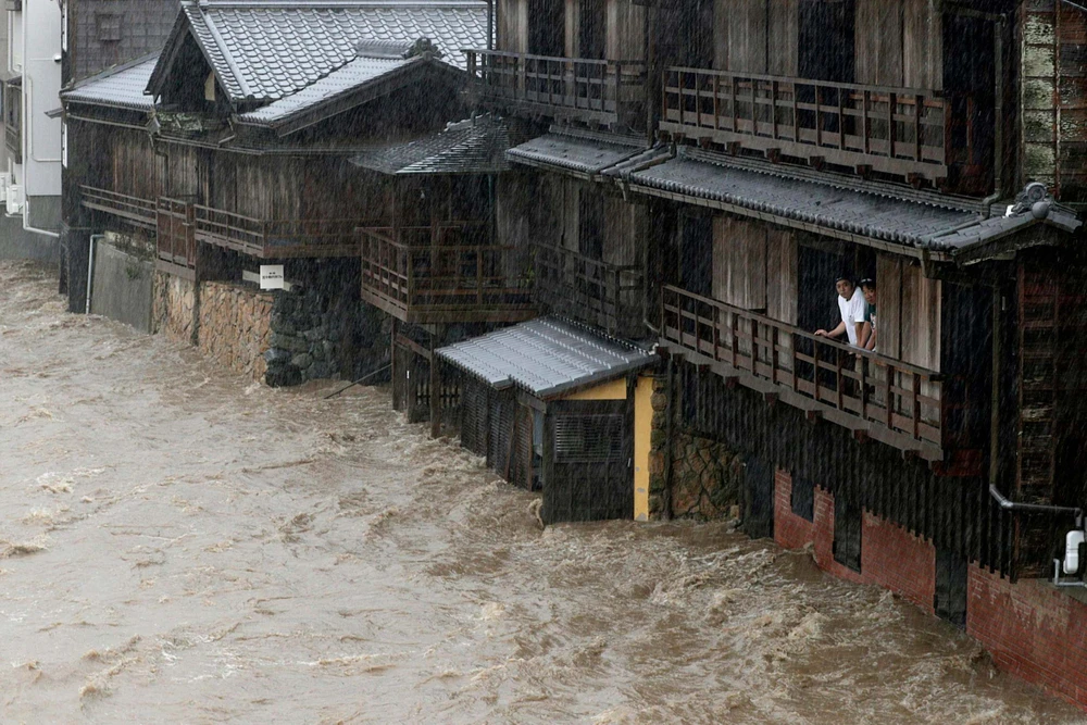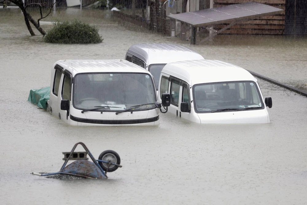 Ngập lụt ở TP Ise, tỉnh Mie (Nhật). Ảnh: AFP