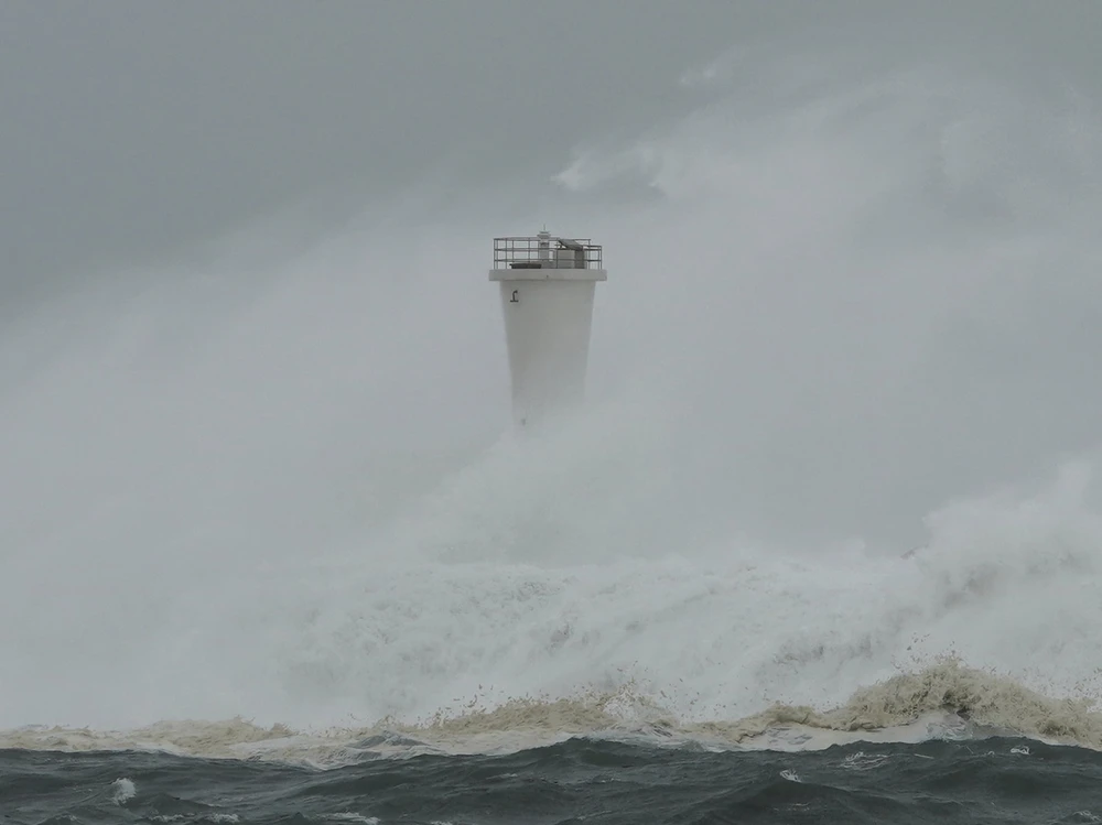 Sóng to ở cảng biển thị trấn Kiho, tỉnh Mie, miền trung Nhật ngày 12-10. Ảnh: AP