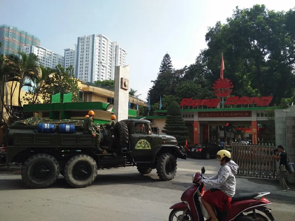 Xe chuyên dụng cùng lực lượng quân đội được điều động.