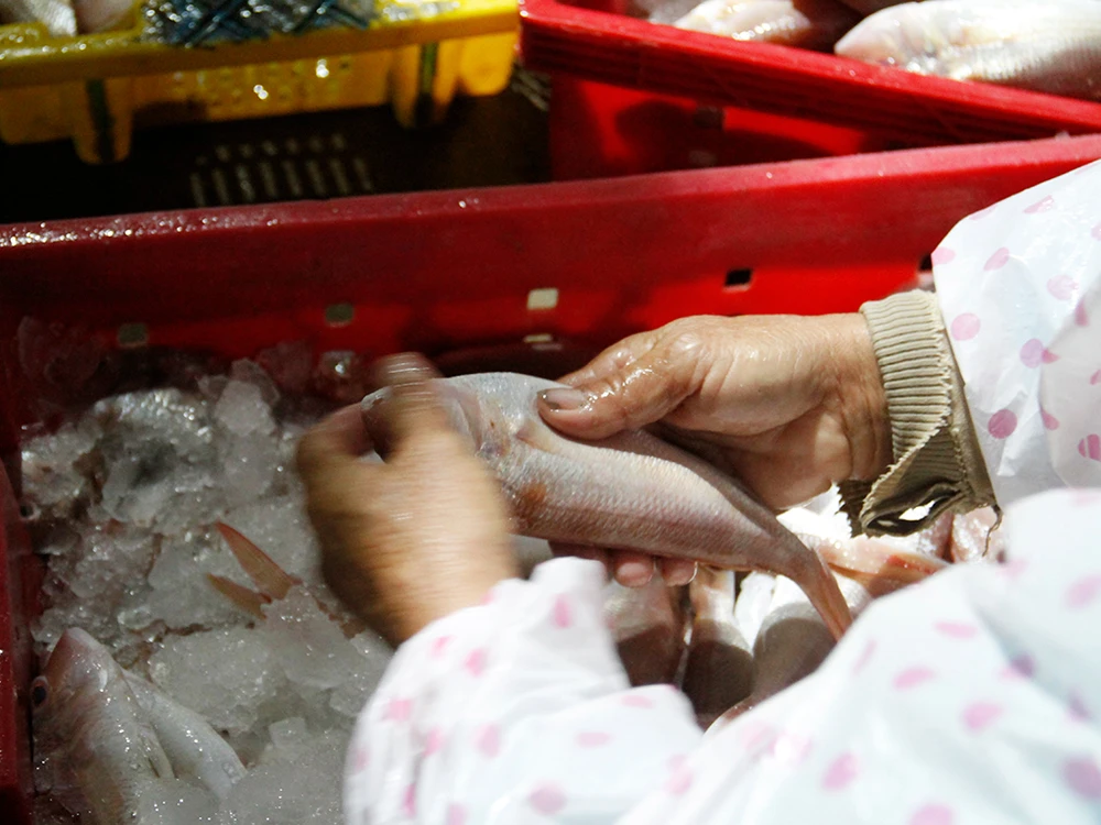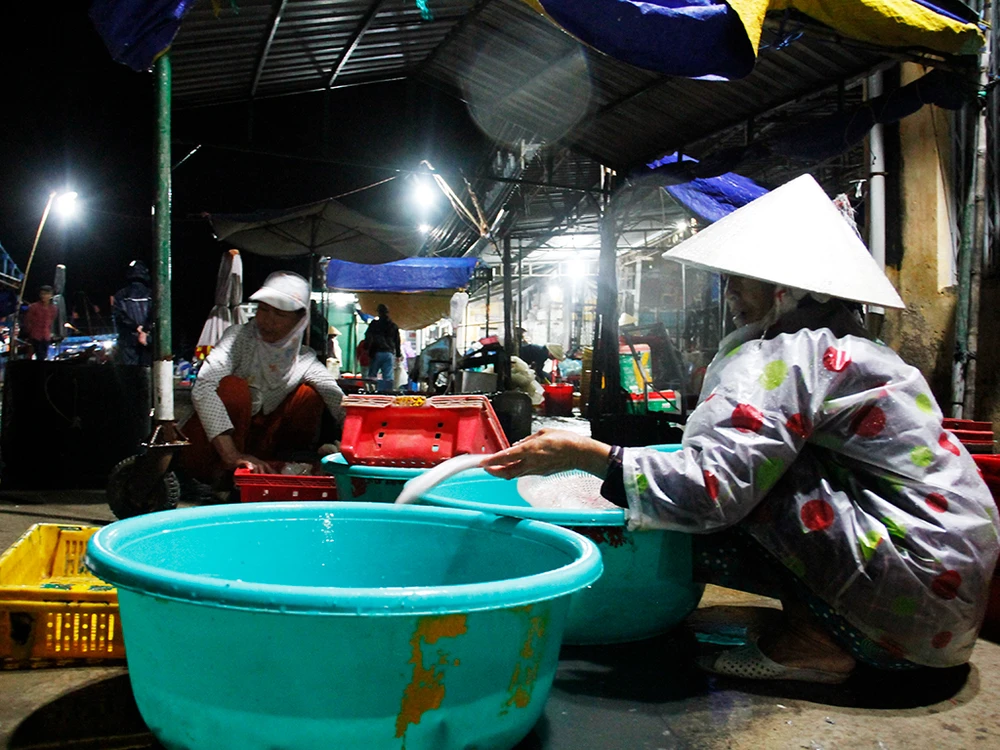 Hoạt động tại chợ cá ven biển này vẫn khá sôi động.