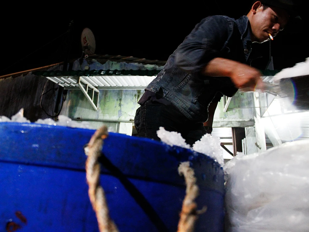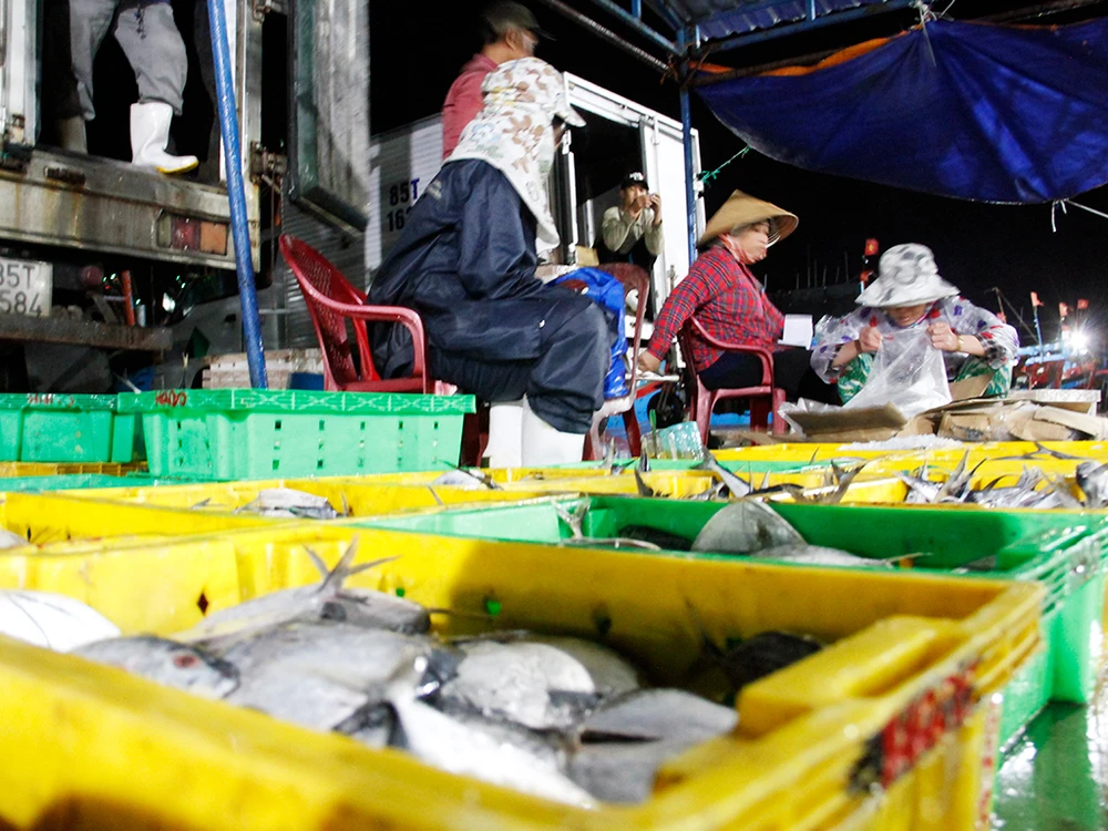 Cá được đưa vào cảng Đông Hải, phần lớn được ướp lạnh.