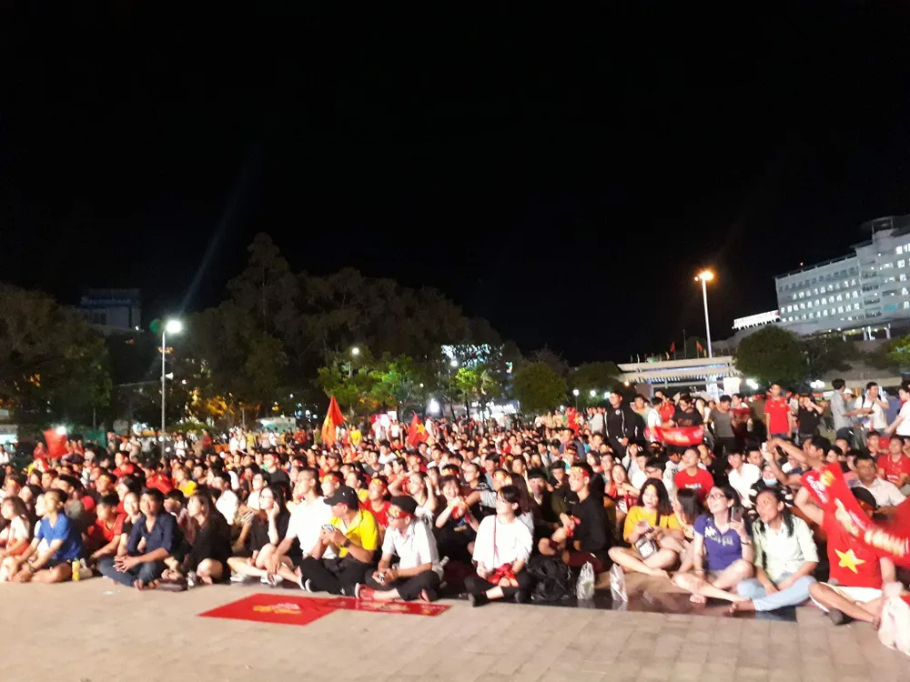 Cổ động viên rủ nhau về màn hình lớn ở Công viên Lưu Hữu Phước để cổ vũ cho đội bóng thân yêu.