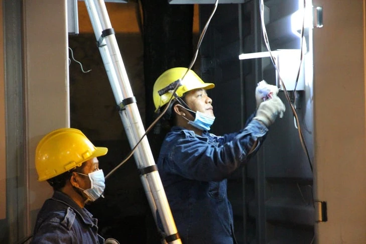 Nhân viên điện lực tiến hành bắt điện, kiểm tra điện kỹ càng để chốt đưa vào hoạt động. Ảnh: TS